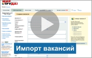 Для экспорта необходимо создание вакансии на МИР ТРУДА. Вы можете перенести на МИР ТРУДА свою вакансию с другого сайта с помощью сервиса "Импорт вакансий" (бесплатно)