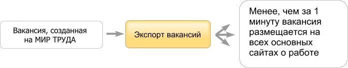 Для того, чтобы быстро разместить вакансию на основных сайтах* достаточно создать её один раз - на МИР ТРУДА и затем воспользоваться услугой Экспорт вакансий