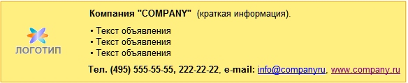 Вы также можете выбрать один из шаблонов и заказать размещение текстового баннера.