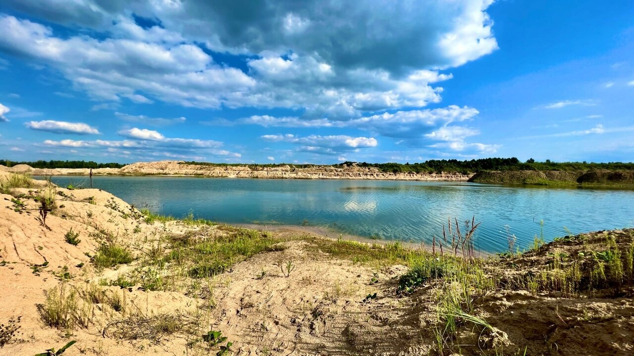 Песчаные просторы, прокрытые дюнами и, изредка растущими, карликовыми растениями. Кажется, что это настоящая пустыня. Но, на самом деле, здесь можно увидеть грузовики и бульдозеры, ведь это действующий песчаный карьер.