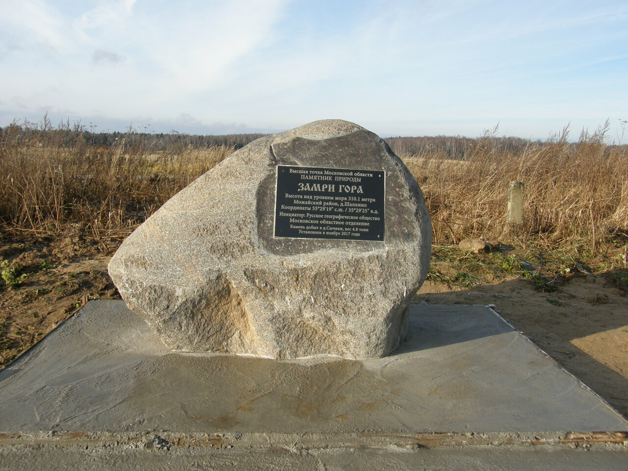 Как говорится на портале Tur-Ray.Ru, самая высокая точка Московской области – Замри-гора, её высота 310 метров над уровнем моря. Сейчас она похожа на пологий холм, взобраться на который не составляет труда.
